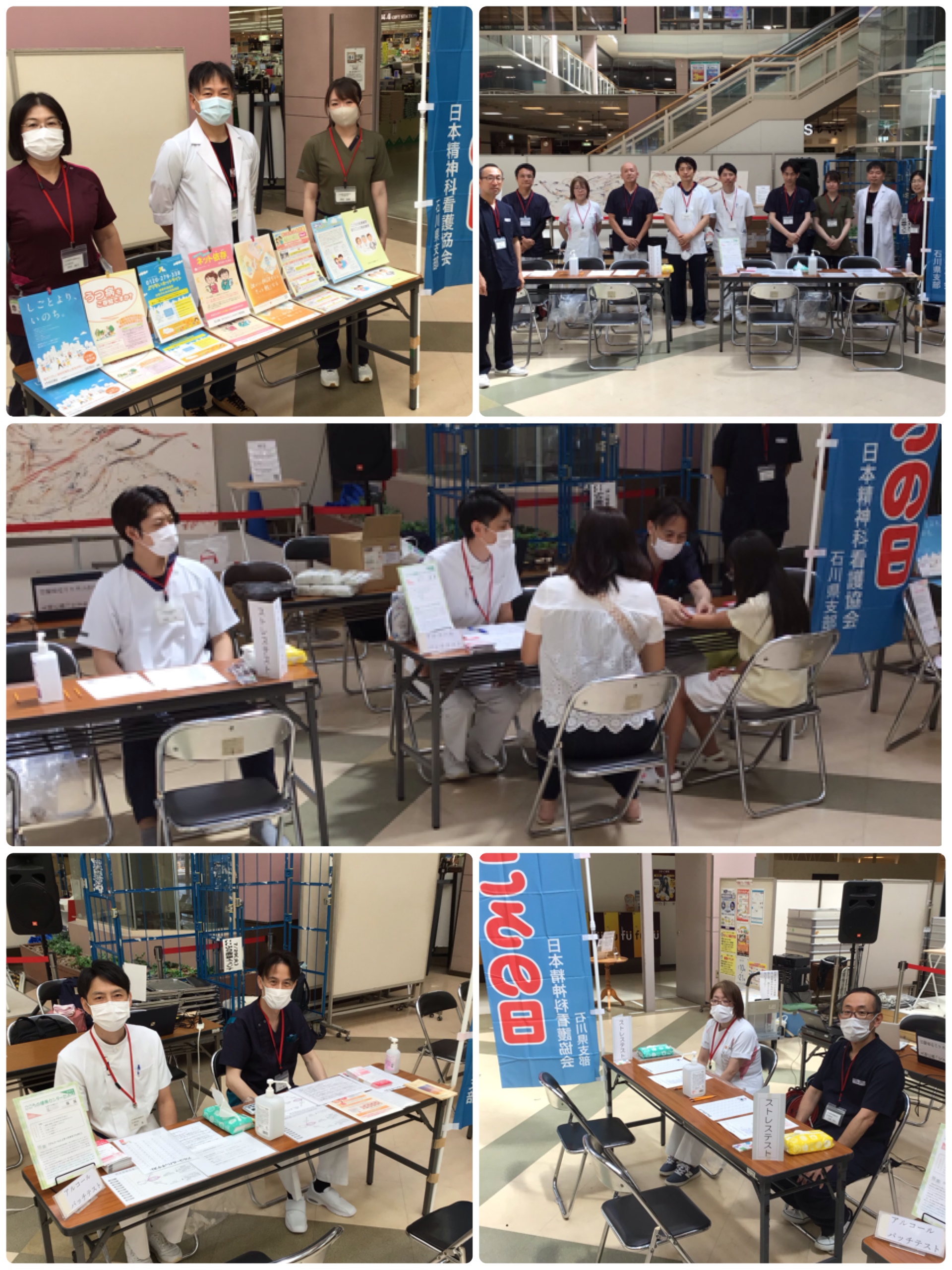 本年度は、支部幹事11人がイベント運営に参加して、イベント開催時間を10:00〜15:00に延長しました。内容に関しては、パンフレット配布を前年度から継続し、『ストレスチェック』、『アルコールパッチテスト』と過去のイベントでもニーズの有った内容を追加しました。チェックテストを行いながら、地域の方々と、こころの健康を含め色々お話しさせて頂く事ができました。