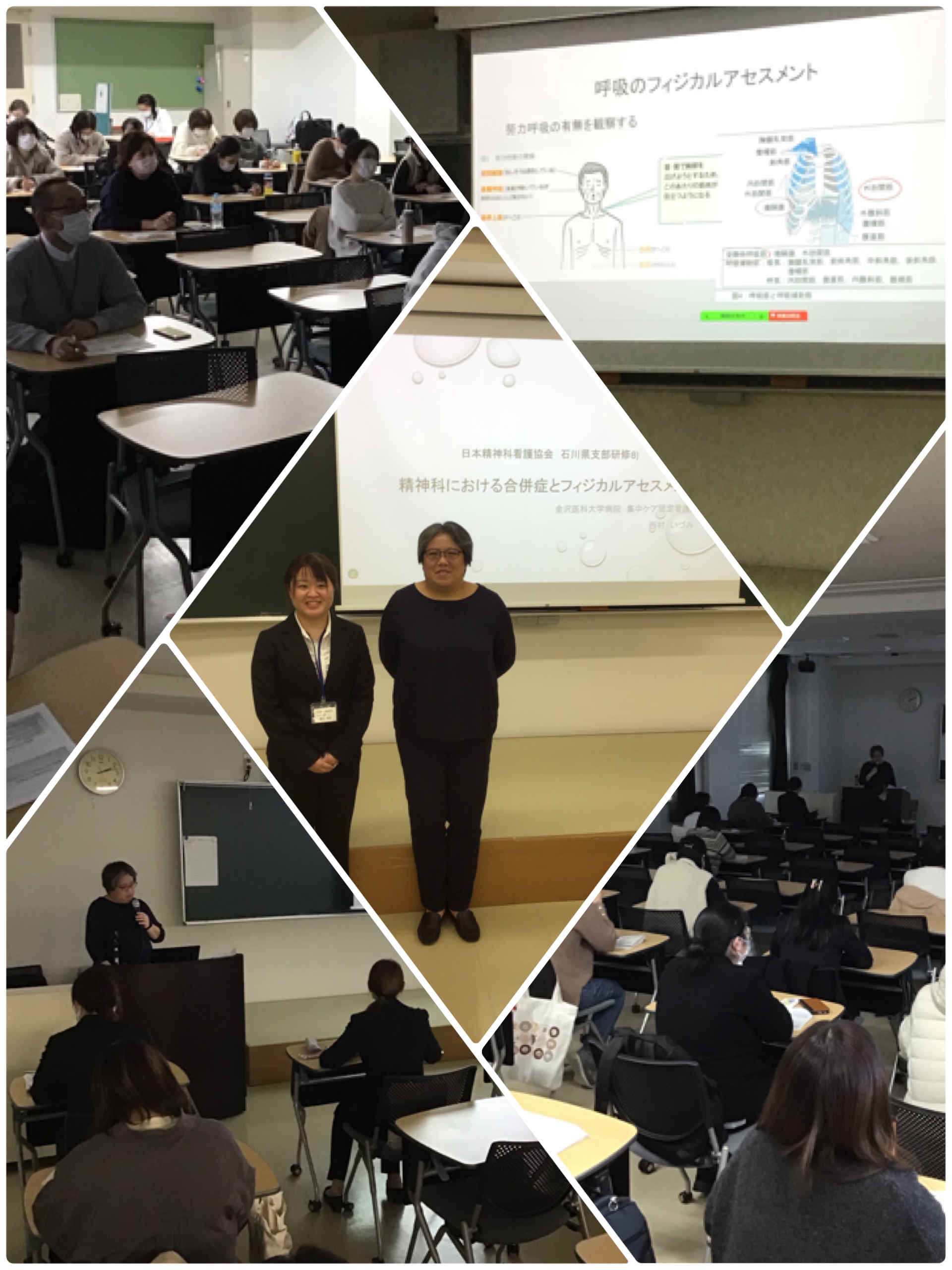 精神科病棟では、平時は聴診や触診をあまり行わないことが多いのではないでしょうか。しかし、精神科病棟は近年、高齢化や基礎疾患を患った患者さんが入院してくるなど多様化してきています。そこで、フィジカルアセスメントの技術を身に着けることは今後の精神科病棟でも必須となって来ると感じました。